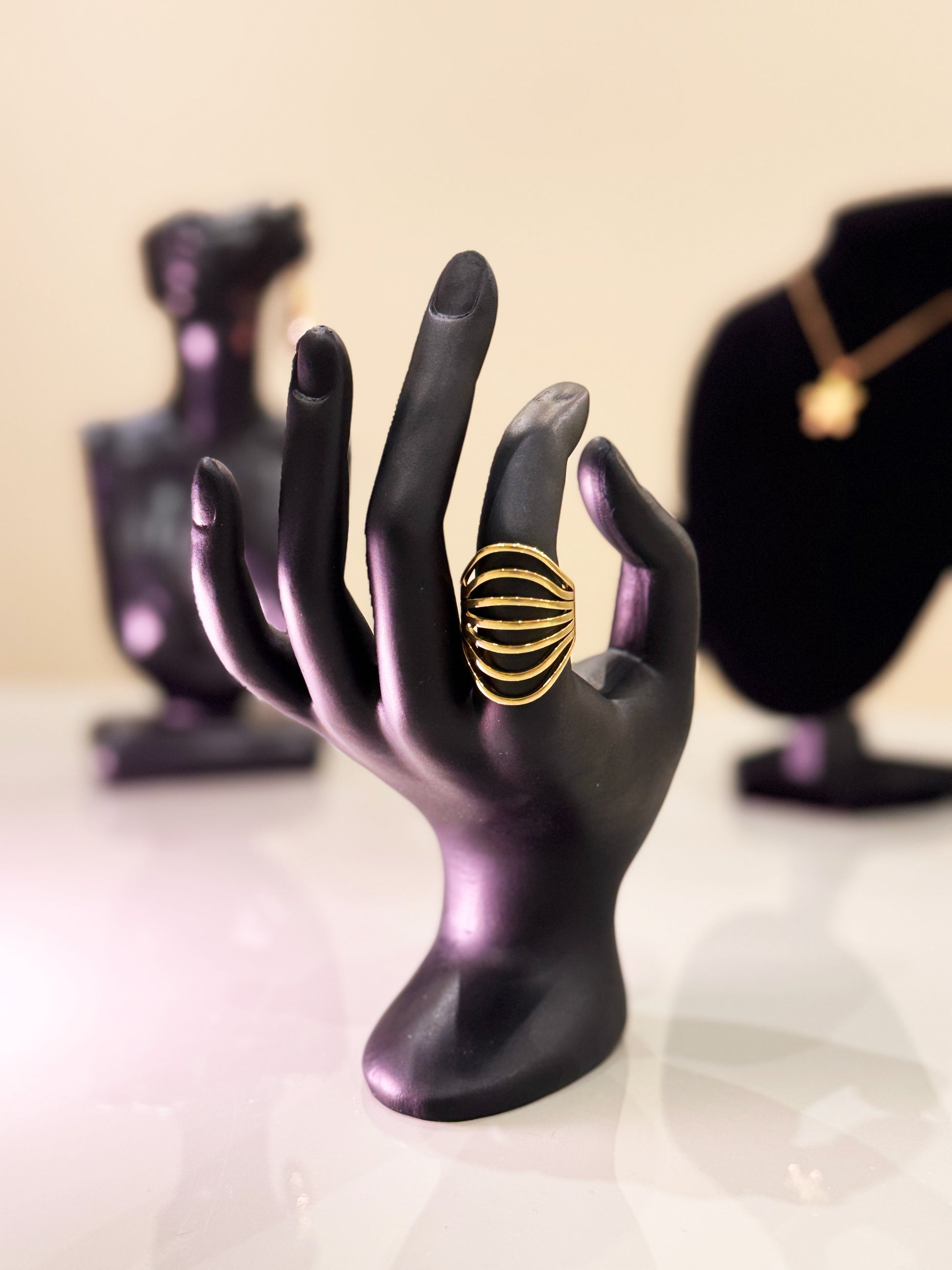 Strong, confident, and stylish. This ring showcases a layered stripe design that adds depth and character. Perfect for everyday wear or special occasions, it embodies contemporary elegance with a bold edge.